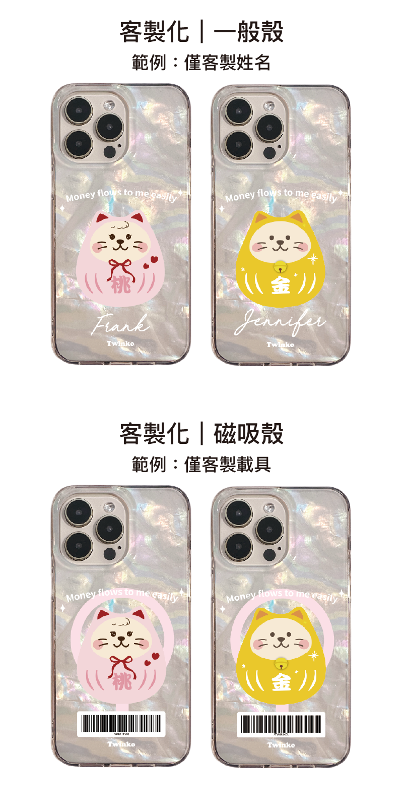 [CA2254]❥貓吉達摩-桃緣&吸金福寶喵系列/貝殼殼/高品質IMD內印刷/貝殼磁吸殼/新春招財/手機殼i17 16 15Pro Max防摔殼