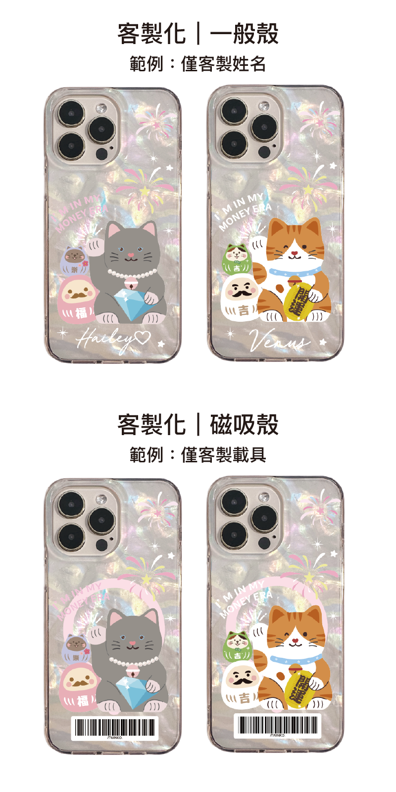 [CA2258]❥貓吉達摩-鑽石&開運迎財貓幸運夜系列/貝殼殼/高品質IMD內印刷/貝殼磁吸殼/新春招財/手機殼i17 16 15Pro Max防摔殼