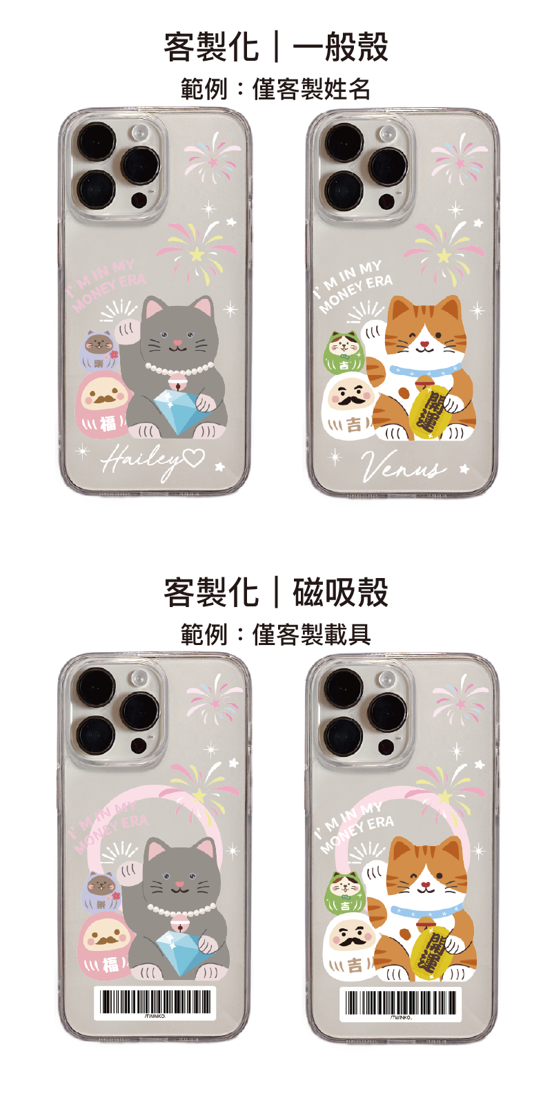 [CA2326]❥貓吉達摩-鑽石&開運迎財貓幸運夜系列/透霧殼/高品質IMD內印刷/磁吸殼/新春招財/手機殼i17 16 15 Pro Max防摔殼