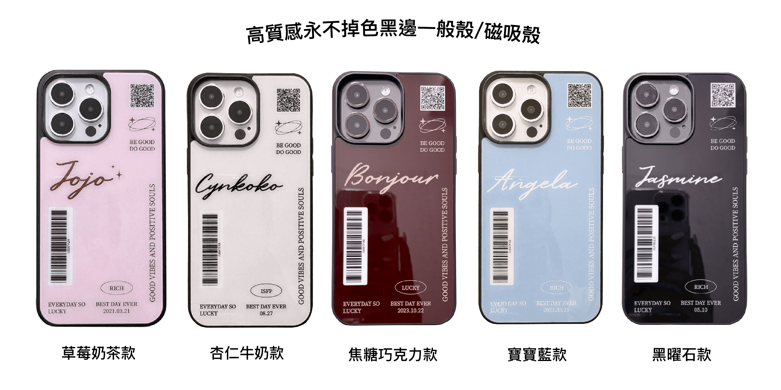 [CA1716]❥獨家原創-BE GOOD時髦文字組合/高質感永不掉色黑邊手機殼磁吸殼/客製化姓名載具條碼QR CODE/iPhone16 15 14 13PRO MAX防摔殼/MagSafe