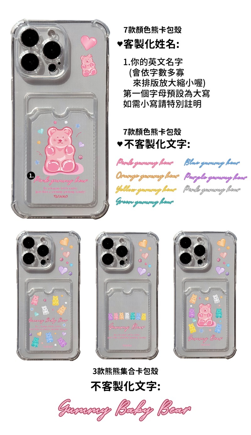 [CA1839]❥Gummy Bear*可愛小熊軟糖-氣墊卡夾殼卡包殼/不客製7款顏色/IPHONE17 16 15 PRO MAX防摔殼/插卡殼