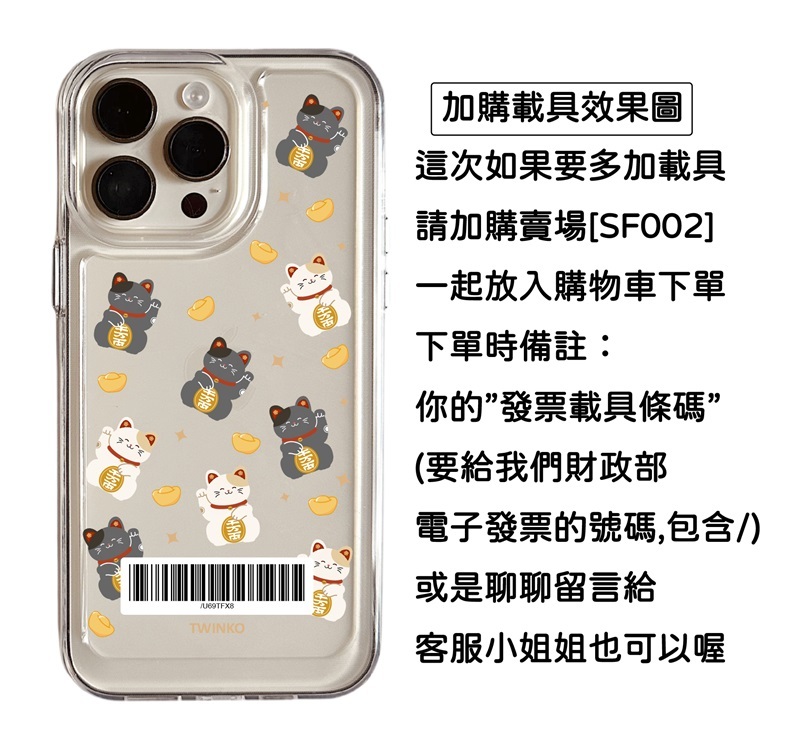 [CA1956]❥招財好運款-黑白滿版招財貓*水晶透明殼/磁吸殼/PHONE16 15 14 13防摔殼
