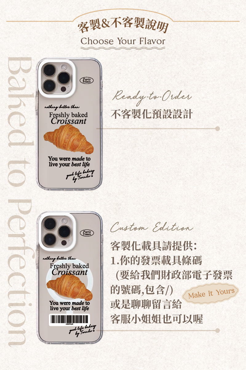 [CA2043]❥獨家設計·Paris Bakery·可頌&蝴蝶餅/New!白圈防撞邊條殼/磁吸殼/iPhone16 15PRO MAX防摔殼