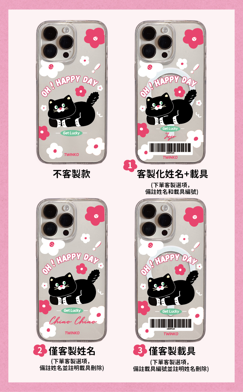 [CA2088]❥OH!HAPPY DAY快樂幸運黑貓/高品質IMD內印刷透明殼/磁吸殼/iPhone17 16 15 14PRO MAX防摔殼