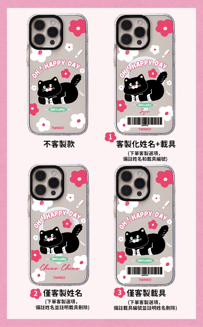 [CA2090]❥OH!HAPPY DAY快樂幸運黑貓*黑圈白邊透明殼/磁吸殼/IPHONE17 16 15 14 13PRO MAX防摔殼/保護殼/掛繩殼