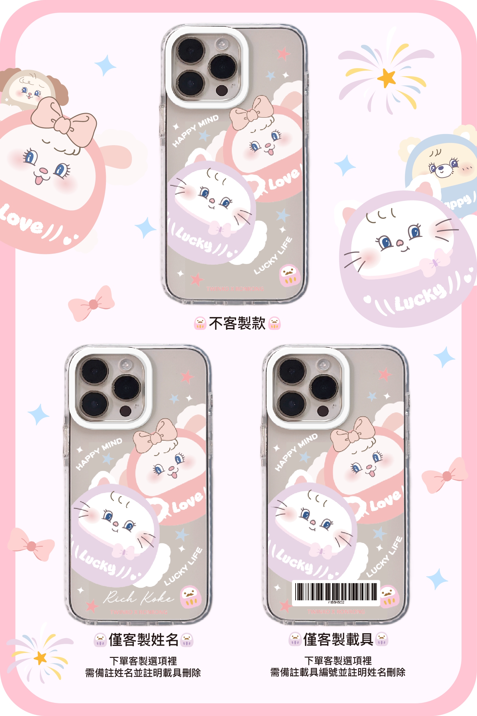 [CA2181]❥幸福兔茸茸&達摩黏TT系列*新款白鏡頭防撞邊條殼/磁吸殼/新年招財/iPhone17 16 15 PRO MAX防摔殼