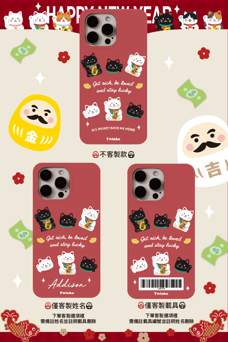 [CA2192]❥貓吉達摩&滿版黑白迎財貓系列/高品質IMD內印刷手機殼/新春招財/磁吸殼iPhone17 16 15Pro Max