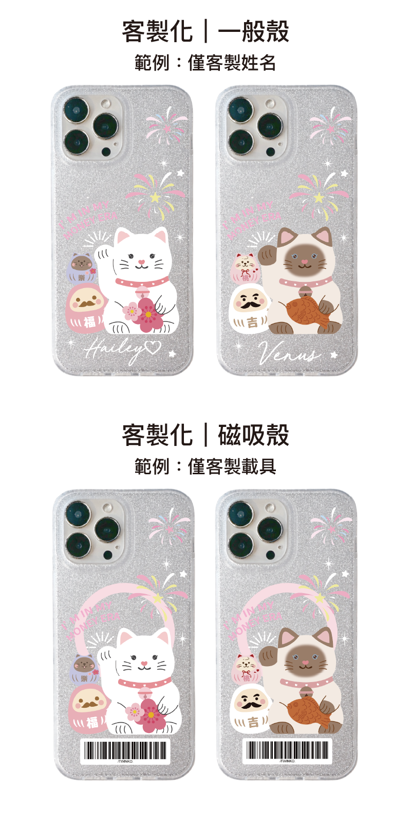 [CA2273]❥貓吉達摩-桃花&鯉魚迎財貓幸運夜系列/閃粉殼/高品質IMD內印刷/貝殼磁吸殼/新春招財/手機殼i17 16 15Pro Max防摔殼