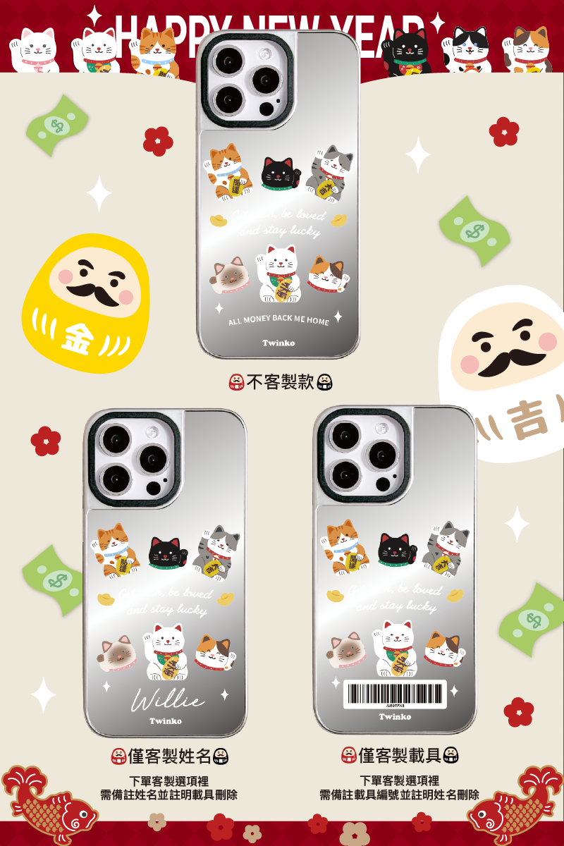 [CA2279]❥貓吉達摩&滿版多色迎財貓系列/高質感霧面銀邊鏡面殼/磁吸殼I/新春招財/iphone17 16 15Pro Max防摔殼