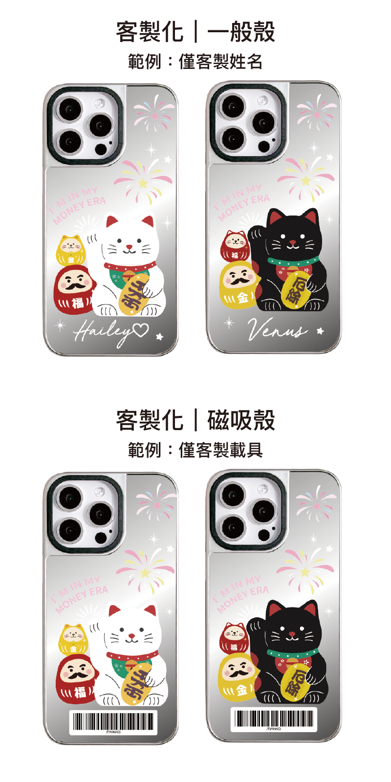[CA2288]❥貓吉達摩-千萬兩&厄除迎財貓幸運夜系列/高質感霧面銀邊鏡面殼/磁吸殼I/新春招財/iphone17 16 15Pro Max防摔殼