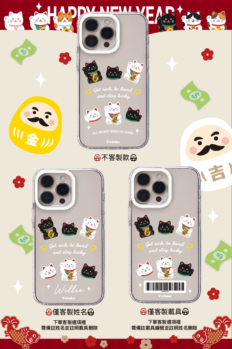 [CA2296]❥貓吉達摩&滿版黑白迎財貓系列/白圈防撞邊條殼/新年招財/磁吸殼/iPhone17 16 15Pro Max防摔殼