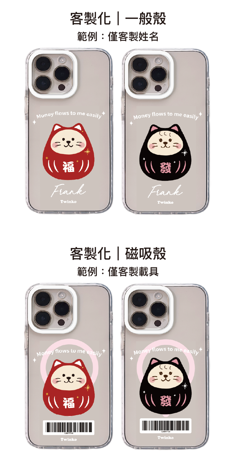 [CA2300]❥貓吉達摩-大福&發財福寶喵系列/白圈防撞邊條殼/新年招財/磁吸殼/iPhone17 16 15Pro Max防摔殼