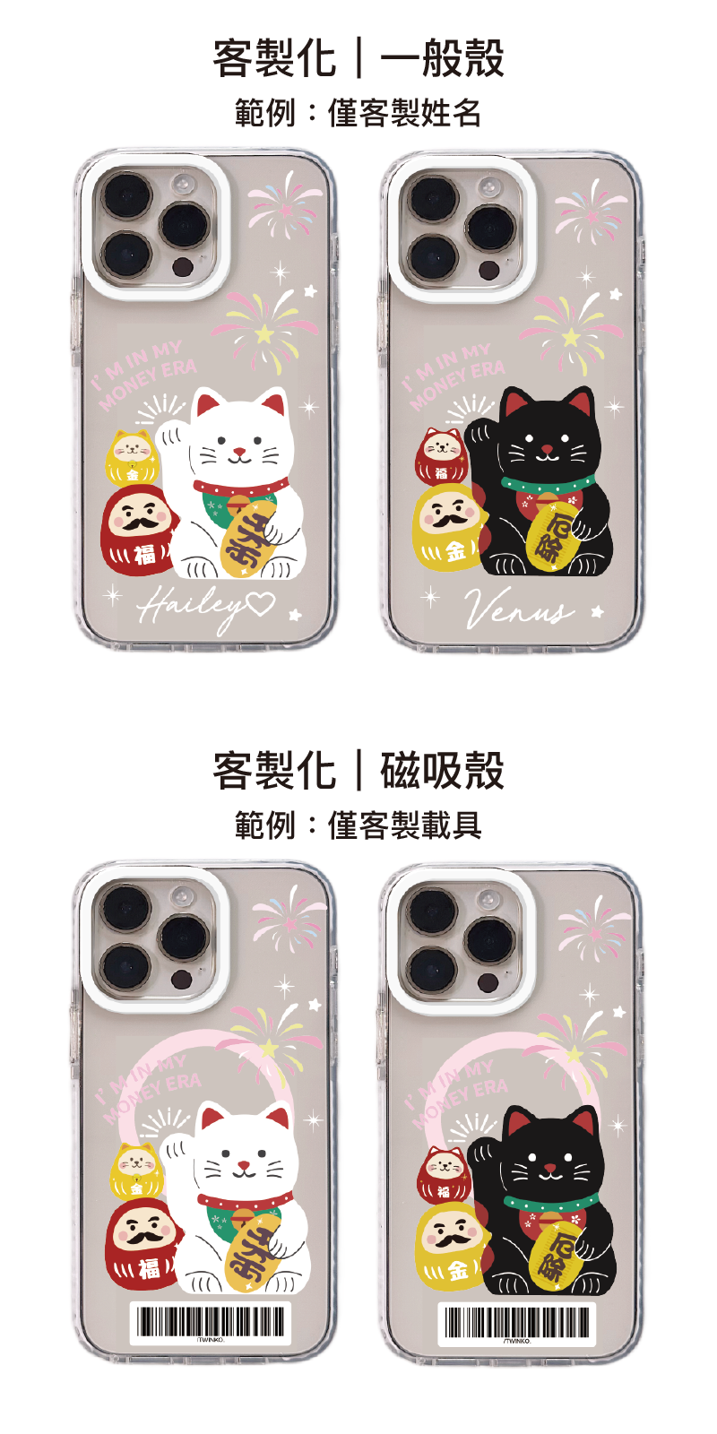 [CA2303]❥貓吉達摩-千萬兩&厄除迎財貓幸運夜系列/白圈防撞邊條殼/新年招財/磁吸殼/iPhone17 16 15Pro Max防摔殼
