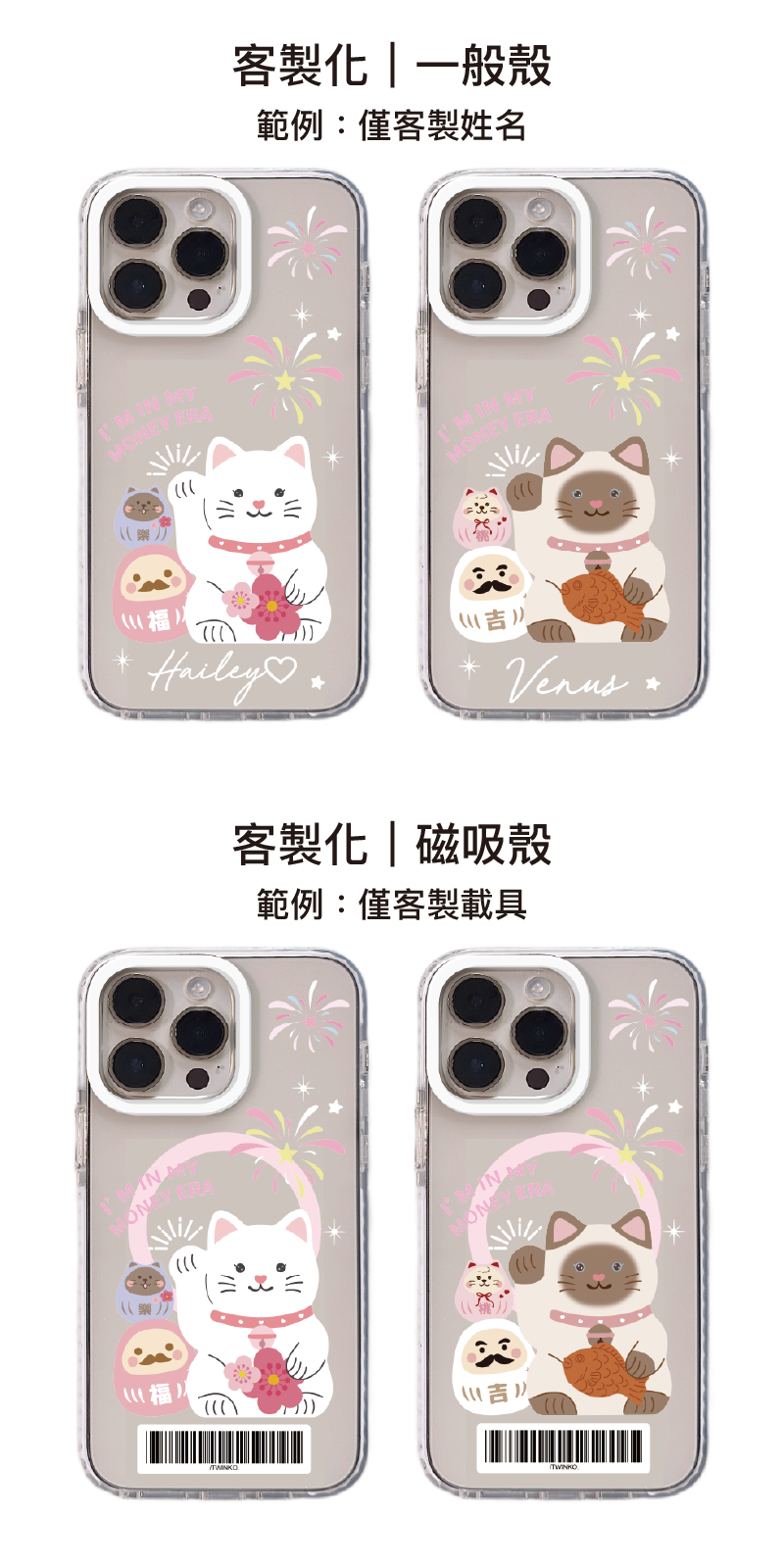 [CA2304]❥貓吉達摩-桃花&鯉魚迎財貓幸運夜系列/白圈防撞邊條殼/新年招財/磁吸殼/iPhone17 16 15Pro Max防摔殼