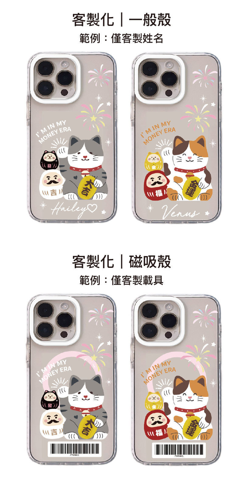 [CA2306]❥貓吉達摩-大吉&金運迎財貓幸運夜系列/白圈防撞邊條殼/新年招財/磁吸殼/iPhone17 16 15Pro Max防摔殼