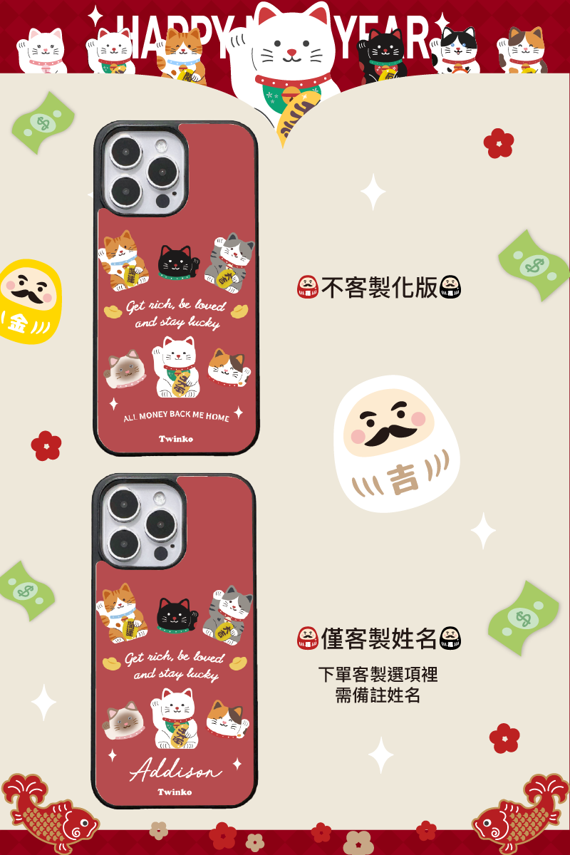 [CA2311]❥貓吉達摩&滿版多色迎財貓系列/二合一菲林殼防摔殼/磁吸殼Iphone17 16 15Pro Max防摔殼