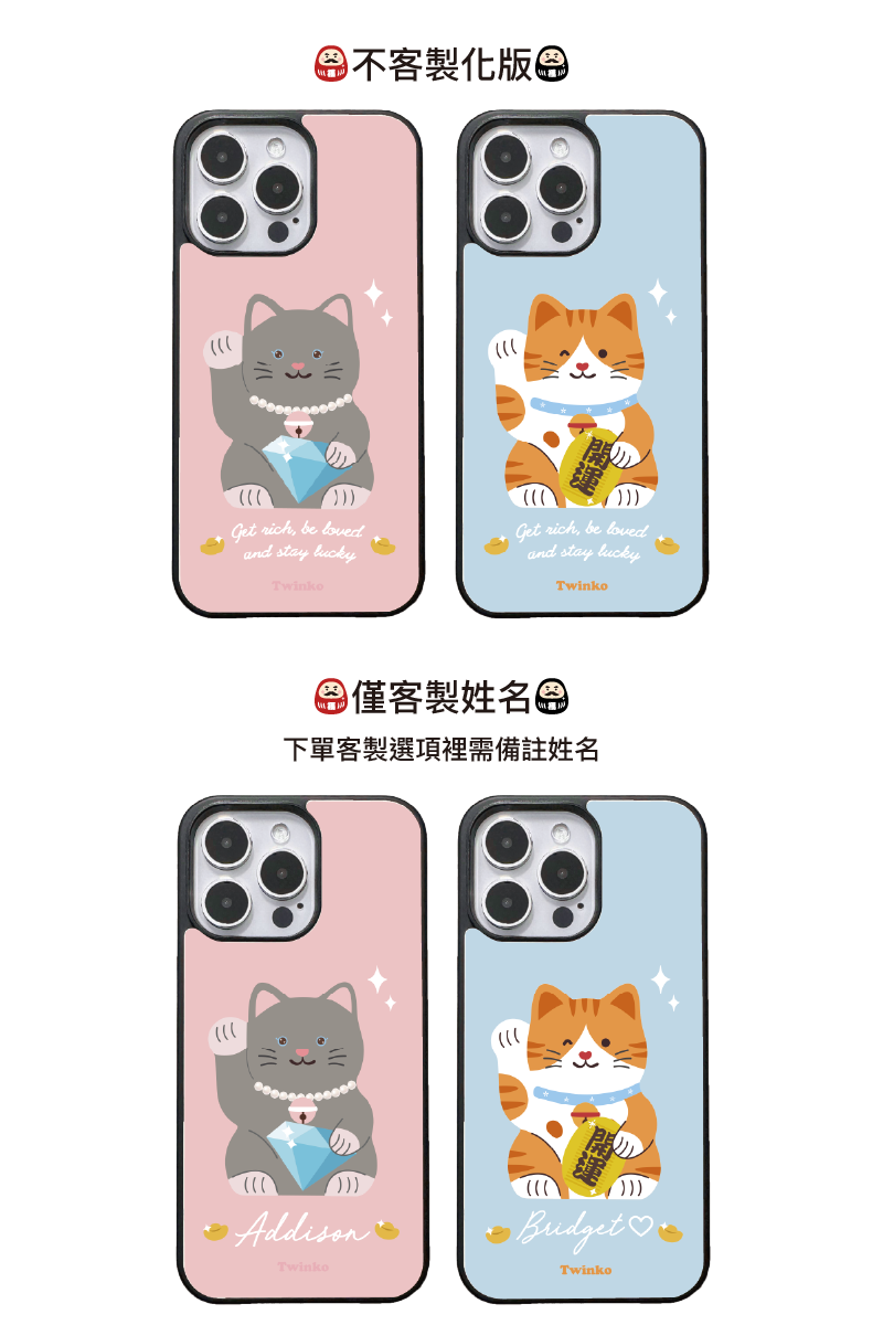 [CA2315]❥貓吉達摩-鑽石&開運迎財貓系列/二合一菲林殼防摔殼/磁吸殼Iphone17 16 15Pro Max防摔殼