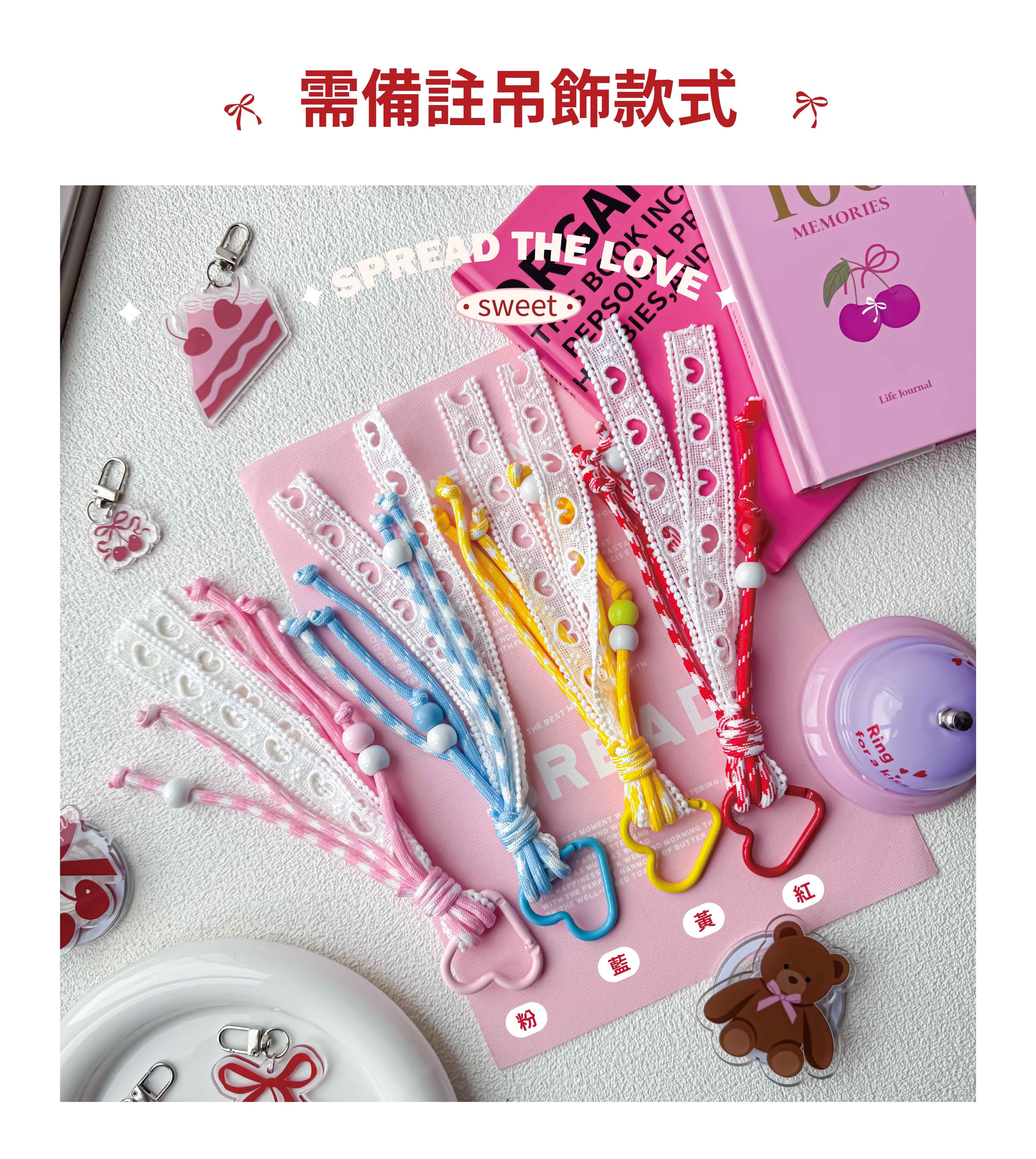 [PH554]🍒法式復古🍰櫻桃蝴蝶結系列*愛心蕾絲編繩扣環+客製化載具吊飾組合/載具吊飾/小吊飾/鑰匙圈/手機吊飾
